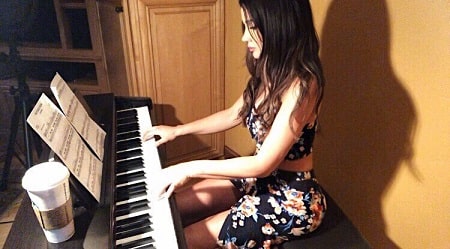 The multi-talent model can fluently play piano and violence. Her father is a professional musician from whom she learned music. Recently posted a picture of her dad, and wishing him "Happy Father's day" by playing the piano.